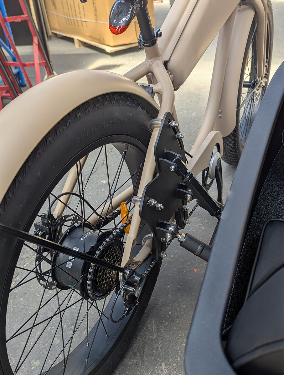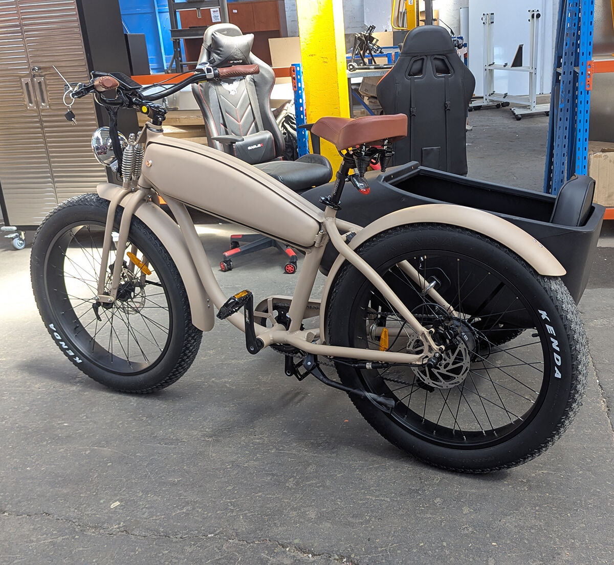 Combines a vintage motorcycle aesthetic with the latest technology. Inspired by the 1940s Harley Davidson, it features a classic motorcycle frame, beach bar handlebar, and wide 4” tires.