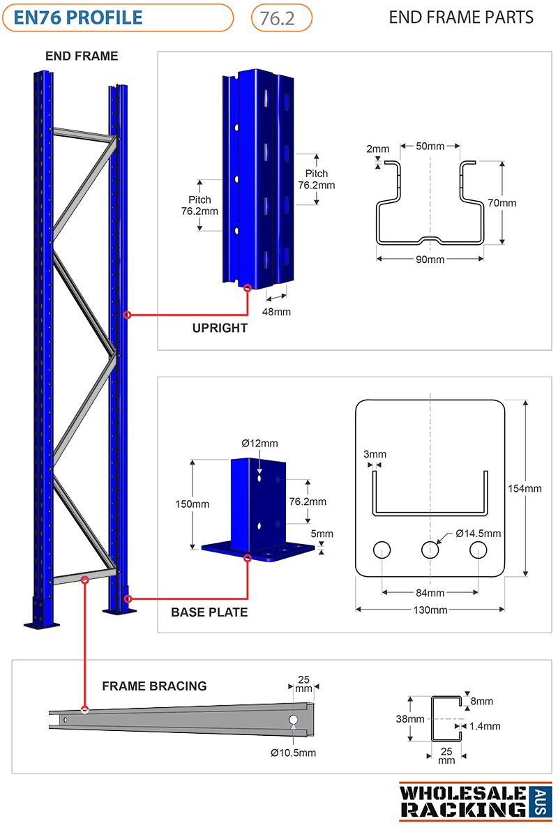 Pallet Racking Frame - 4877mm (Blue painted uprights / zinc braces)